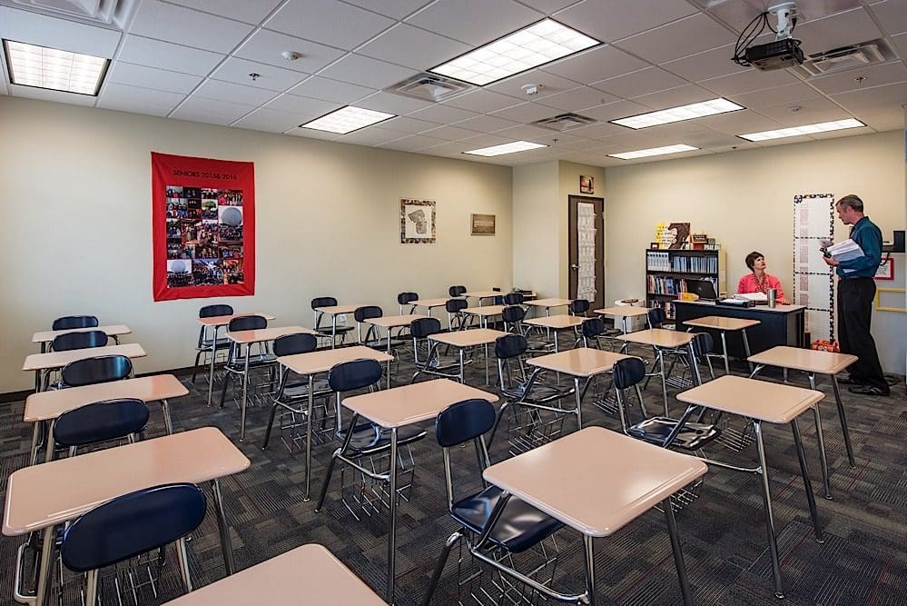 The new First Baptist Christian Academy Classroom Building is a two-story Hybrid Class A structural steel and pre-engineered steel structure with a masonry façade. The 36,004 square-foot facility consists of a cafetorium with a stage, a commercial catering kitchen, band rooms, science labs, administration offices and other classrooms.