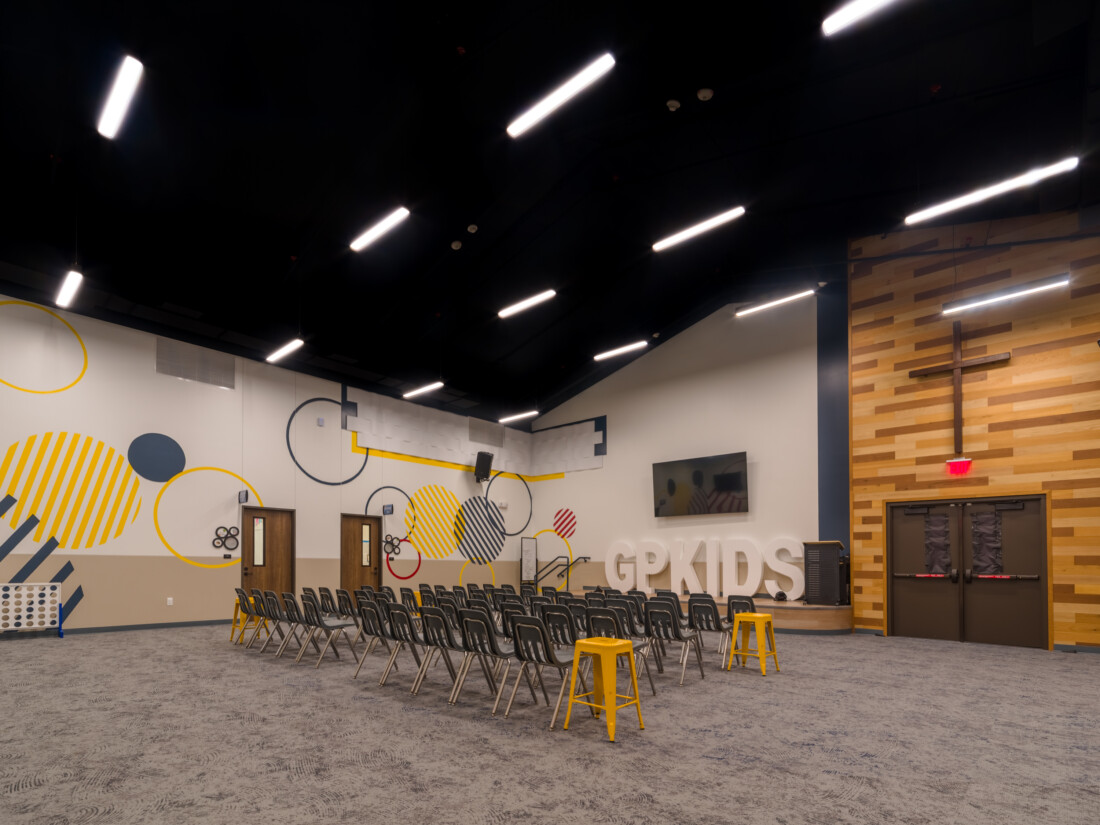 Gracepoint Fellowship Baptist Church expanded its campus to accommodate their growing ministry with the addition of a Children’s Building. The new facility provides additional classrooms for GraceKids Preschool, dedicated space for their junior high ministry, five new adult classrooms, 60 new paved parking spaces, a drop-off canopy, and an outdoor play area. This addition nearly doubles the capacity for Sunday programs, supporting Gracepoint’s mission to provide a loving, safe atmosphere for all children.