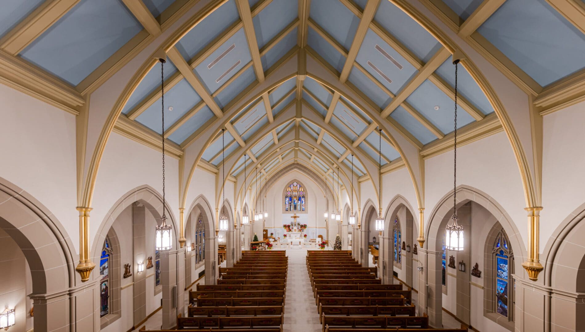 Facing a series of longtime water intrusion issues, Holy Rosary Catholic Church engaged Paradigm Construction to investigate and identify the root causes of exterior envelope failure. Detailed documentation and removal of certain materials started the process of demolition, closely followed by remediation of the slate tile roofing, adding metal step flashing and sealants, installing new wall cap flashing, repairs and replacement of damaged cast stone, masonry tuck-pointing and stained-glass window repairs. Interior repairs and upgrades for liturgical significance were also undertaken, updating the historically significant space. This stunning example of architecture received the attention and care needed to allow it to extend its usable life while respecting the architectural significance of the building.