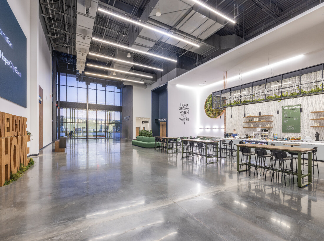Completed and dedicated in early December 2025, Hope City Church expanded its permanent 5,300-seat flagship campus with a new 41,000-square-foot, 1,900-seat Sanctuary addition. The project also included a 26,000-square-foot renovation creating Hope City Children’s Church, known as Kids Town. Managed by ChurchWorx and designed by Kirksey, these improvements were thoughtfully executed to support ministry growth, enhance the worship experience, and strengthen the campus’s ability to serve families and the surrounding Houston community.