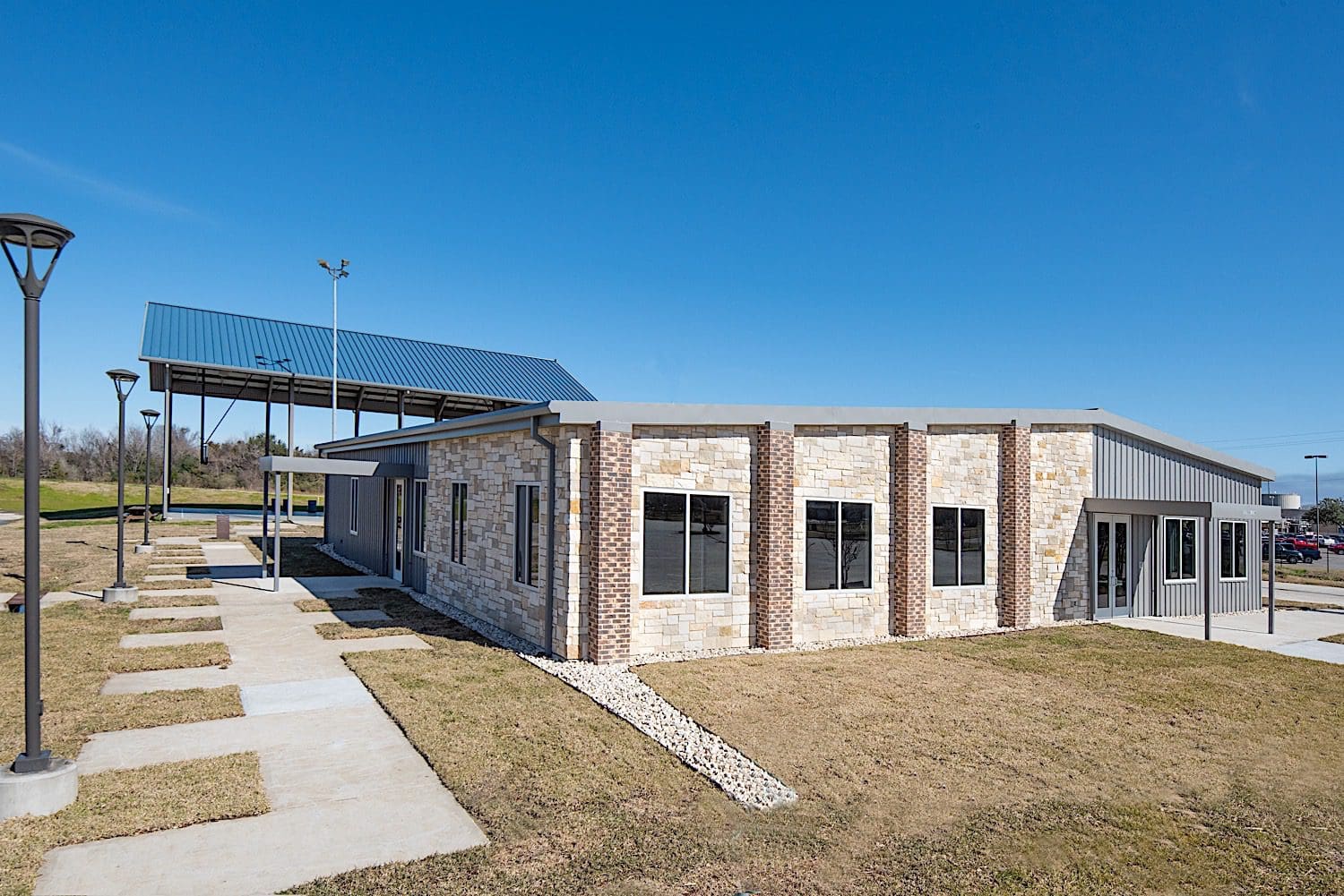 The St. John the Evangelist Catholic Church Youth Center is a new ground-up 6,000 square-foot pre-engineered metal building with high impact glass and a stone, brick, and metal panel exterior. The interior of this facility is an open-concept design incorporating multiple classrooms, a game room, and a coffee bar.