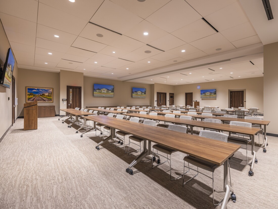 The administrative office complex and learning center is nestled on 5.5 wooded acres in the heart of the Tomball Medical Center. This building supports TRHF’s mission of improving healthcare in the greater Tomball region. The surrounding park area is open to the community and includes a shaded walking trail with fitness stations, a sensory garden designed for individuals with special needs, a tranquil stocked pond, a covered pavilion, and other outdoor features that promote health and wellness throughout the community.