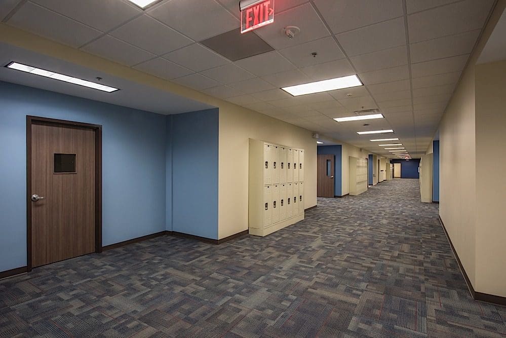 The new First Baptist Christian Academy Classroom Building is a two-story Hybrid Class A structural steel and pre-engineered steel structure with a masonry façade. The 36,004 square-foot facility consists of a cafetorium with a stage, a commercial catering kitchen, band rooms, science labs, administration offices and other classrooms.
