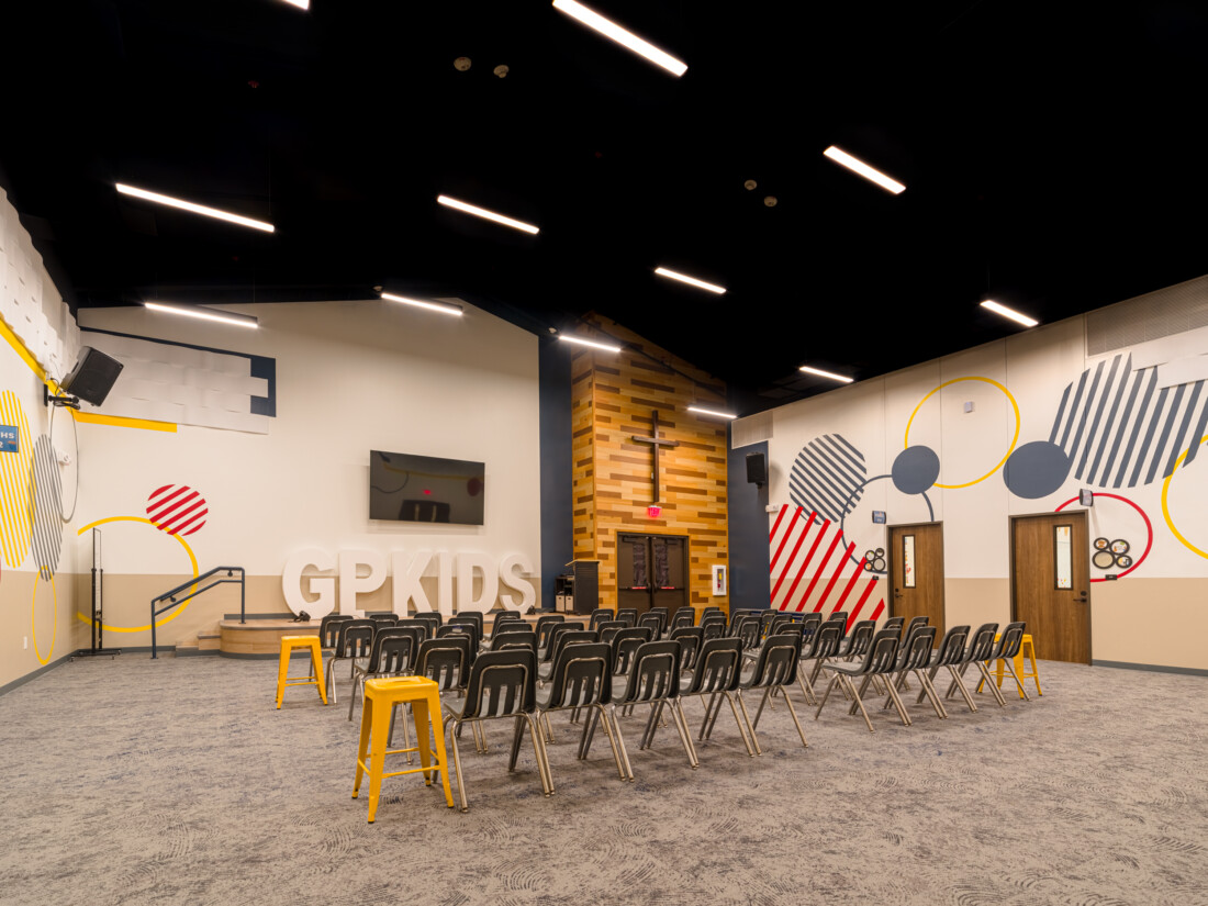 Gracepoint Fellowship Baptist Church expanded its campus to accommodate their growing ministry with the addition of a Children’s Building. The new facility provides additional classrooms for GraceKids Preschool, dedicated space for their junior high ministry, five new adult classrooms, 60 new paved parking spaces, a drop-off canopy, and an outdoor play area. This addition nearly doubles the capacity for Sunday programs, supporting Gracepoint’s mission to provide a loving, safe atmosphere for all children.
