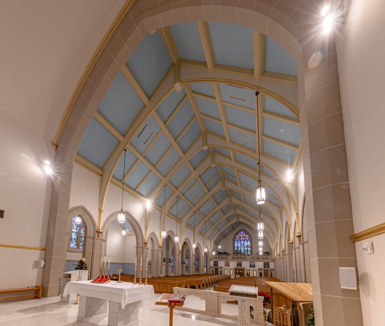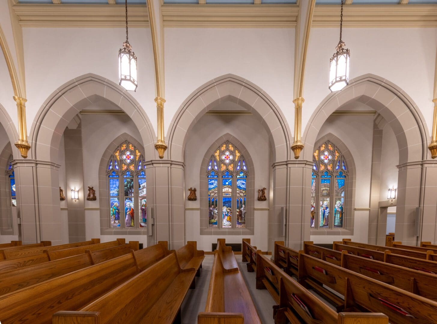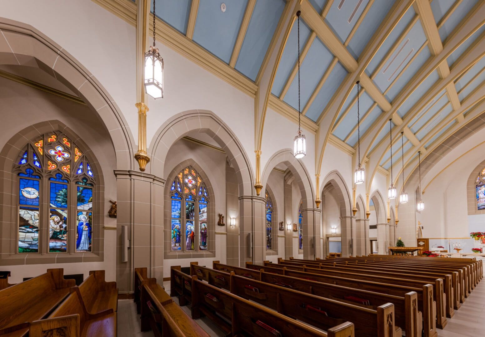 Facing a series of longtime water intrusion issues, Holy Rosary Catholic Church engaged Paradigm Construction to investigate and identify the root causes of exterior envelope failure. Detailed documentation and removal of certain materials started the process of demolition, closely followed by remediation of the slate tile roofing, adding metal step flashing and sealants, installing new wall cap flashing, repairs and replacement of damaged cast stone, masonry tuck-pointing and stained-glass window repairs. Interior repairs and upgrades for liturgical significance were also undertaken, updating the historically significant space. This stunning example of architecture received the attention and care needed to allow it to extend its usable life while respecting the architectural significance of the building.