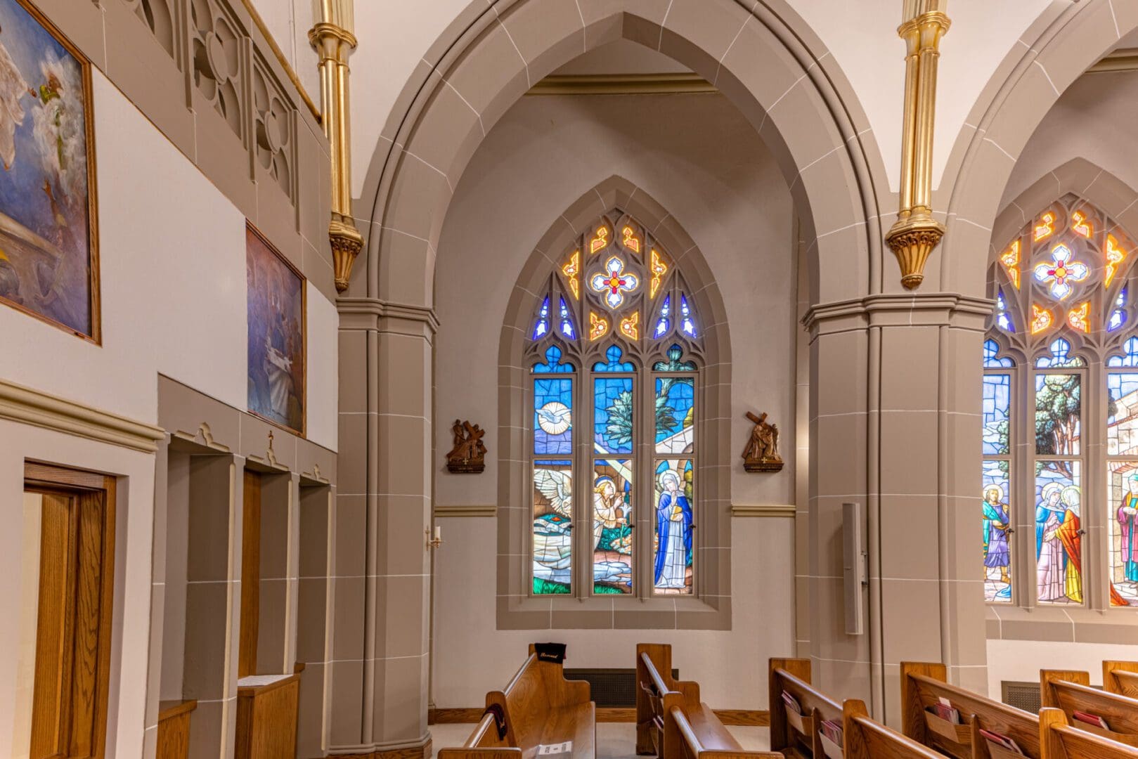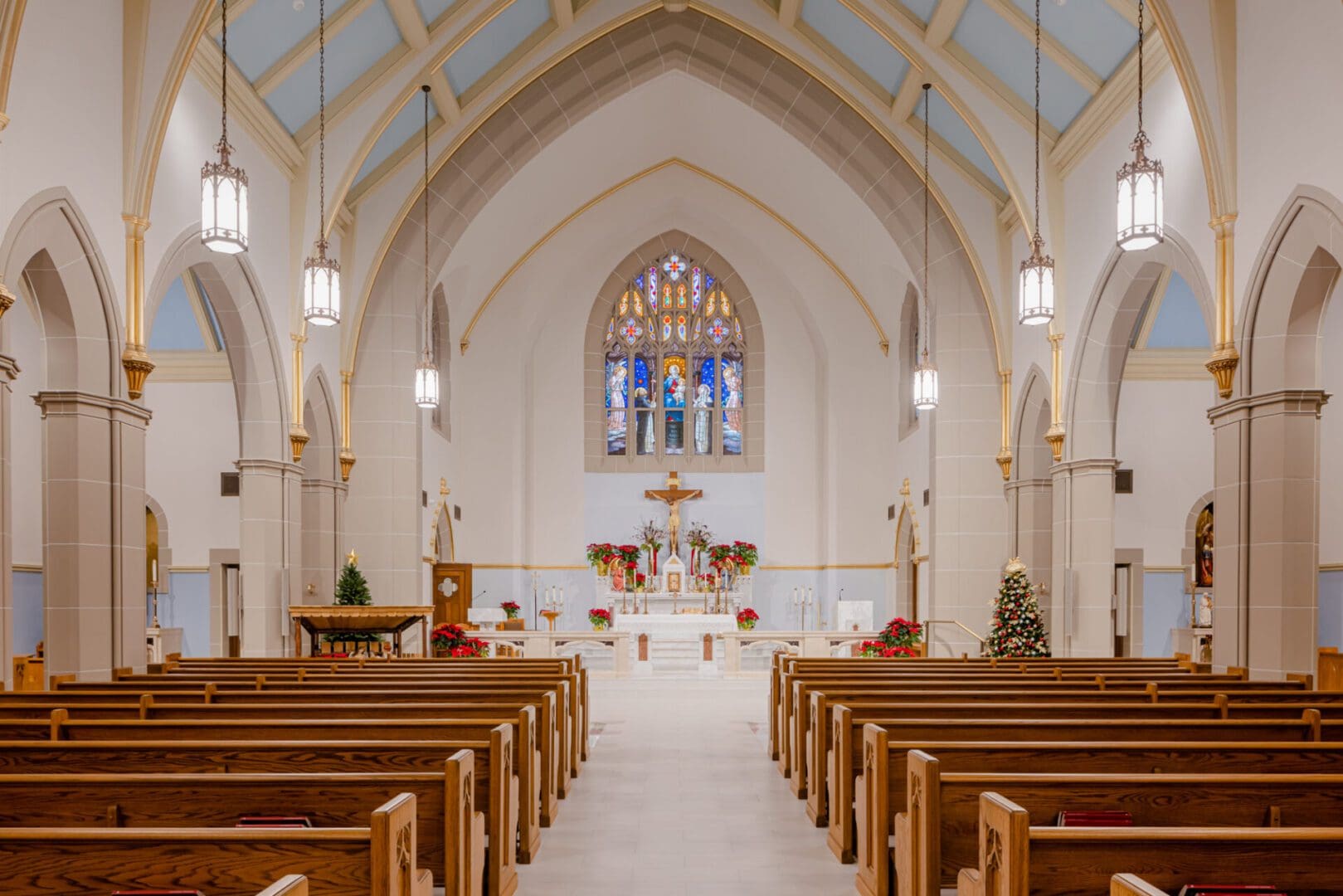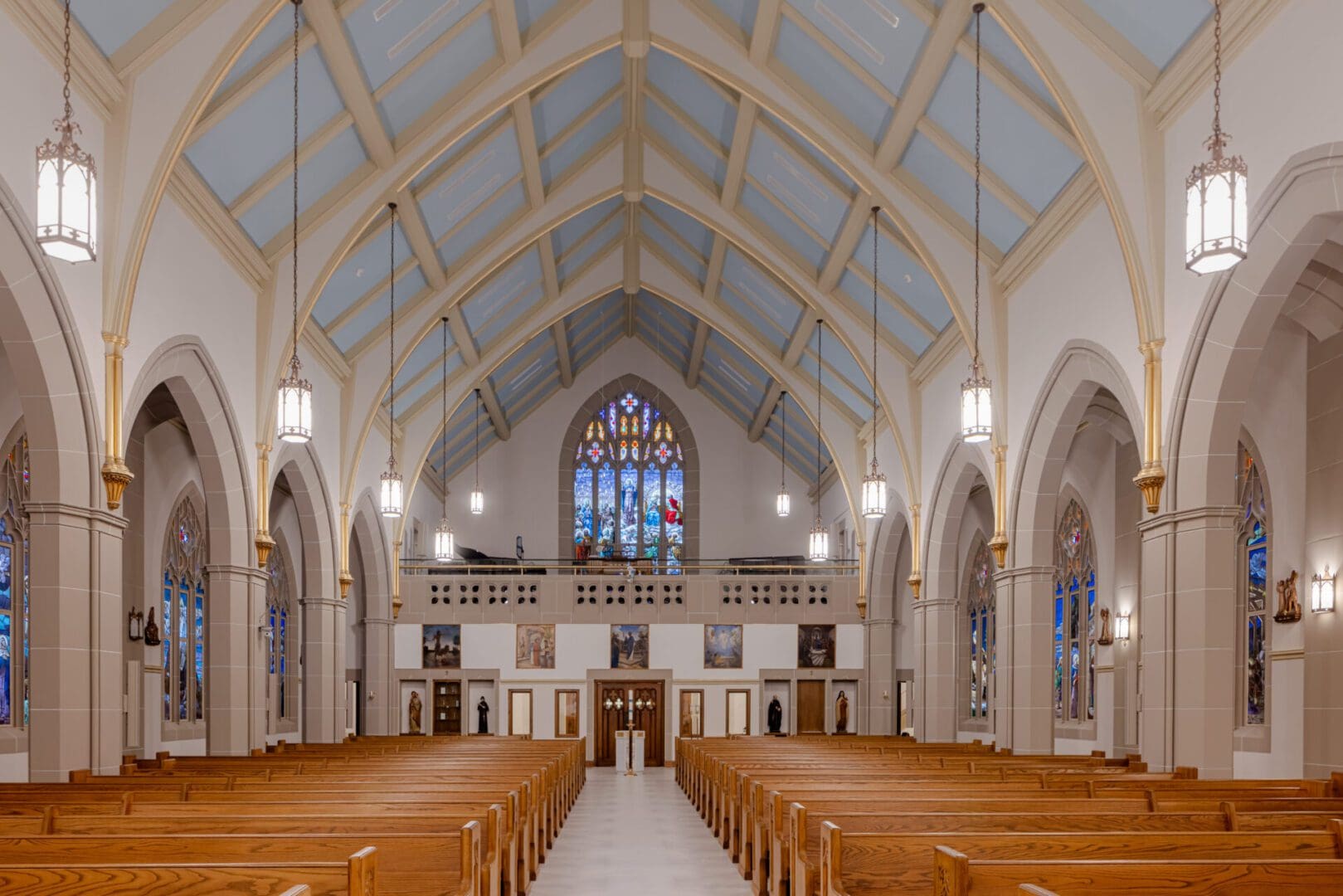 Facing a series of longtime water intrusion issues, Holy Rosary Catholic Church engaged Paradigm Construction to investigate and identify the root causes of exterior envelope failure. Detailed documentation and removal of certain materials started the process of demolition, closely followed by remediation of the slate tile roofing, adding metal step flashing and sealants, installing new wall cap flashing, repairs and replacement of damaged cast stone, masonry tuck-pointing and stained-glass window repairs. Interior repairs and upgrades for liturgical significance were also undertaken, updating the historically significant space. This stunning example of architecture received the attention and care needed to allow it to extend its usable life while respecting the architectural significance of the building.