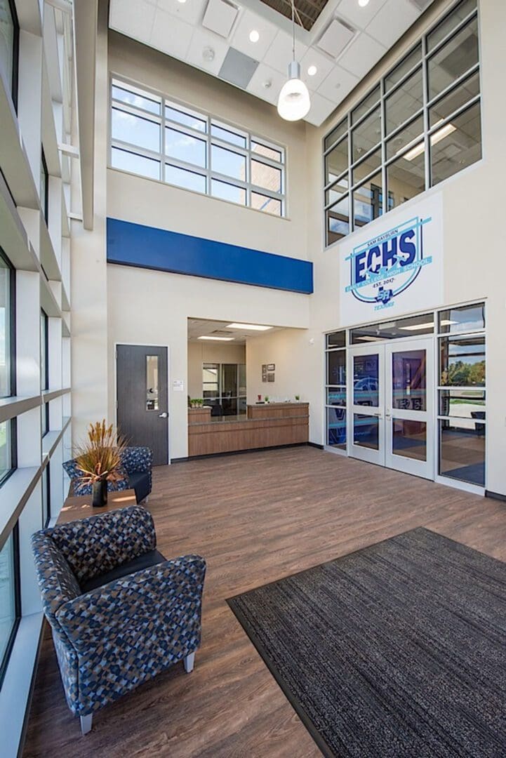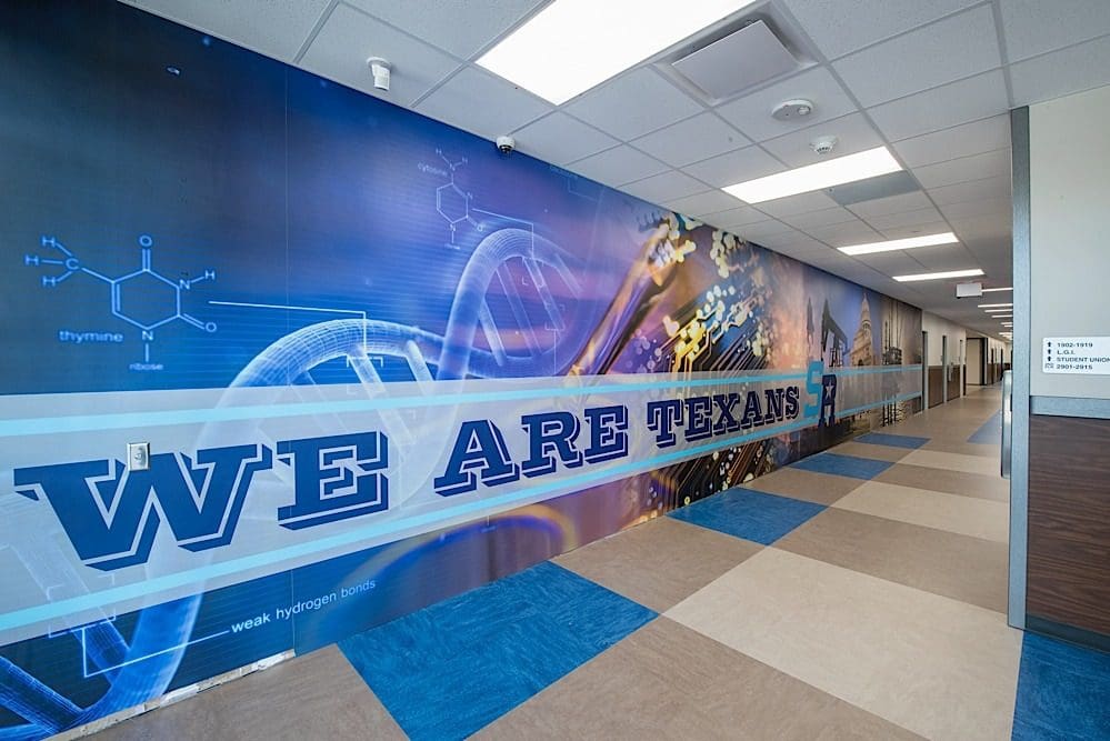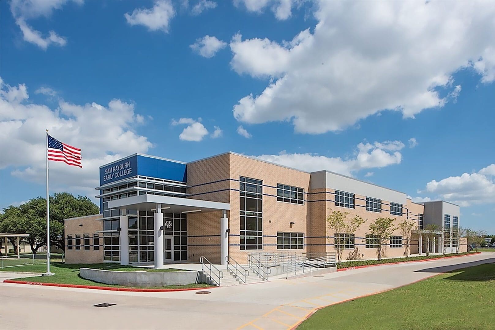 The Pasadena Independent School District’s Sam Rayburn High School Early College Annex is a new 32,200 square-foot two-story structural steel building with a brick and Nichiha façade. The facility consists of a cafeteria and kitchen, science labs, classrooms and an administration wing.