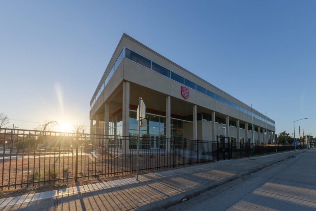 Paradigm Construction completed the renovation of an abandoned building at 2407 N. Main Street into the Salvation Army’s Greater Houston Area Command Headquarters, consolidating administrative offices and community services under one roof. The facility now features the organization’s Houston territorial headquarters, expanded social services teams, veterans’ outreach, emergency assistance services, a full commercial kitchen and a new Boys & Girls Club. The site improvements include additional parking, multiple added landscaping beds and features, as well as a new pickleball court.