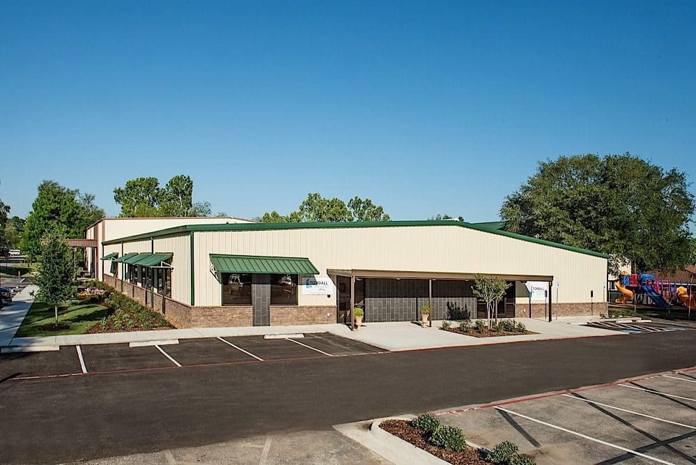 The Tomball Bible Church new Multipurpose Building is a pre-engineered metal building with a stone and pre-finished metal wall panel exterior and a standing seam roof. This 15,480 square-foot facility includes a pre-school, nursey, and a youth worship area.