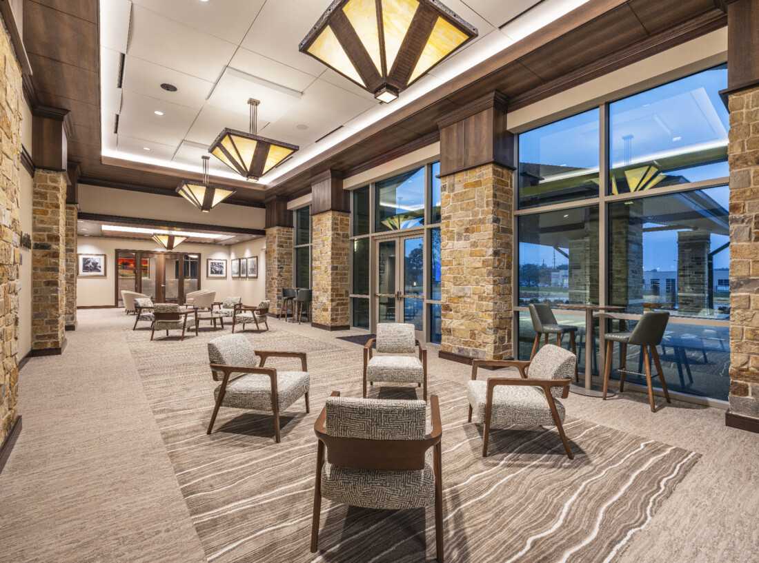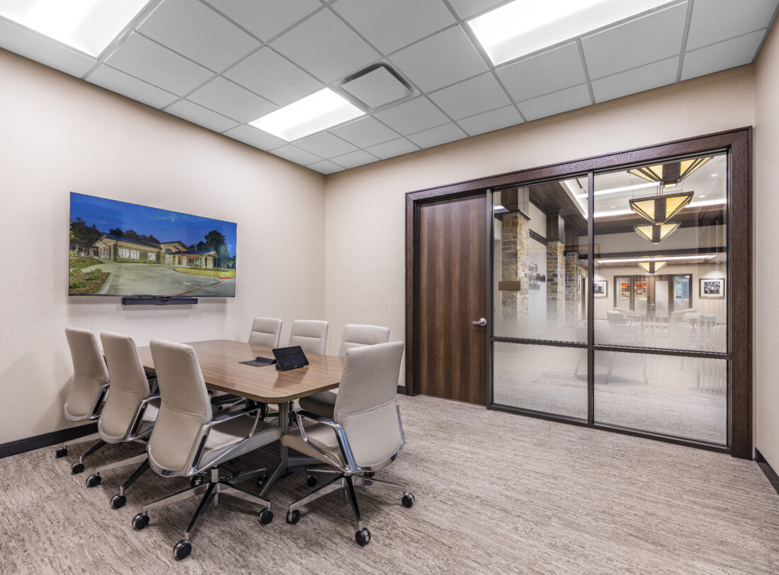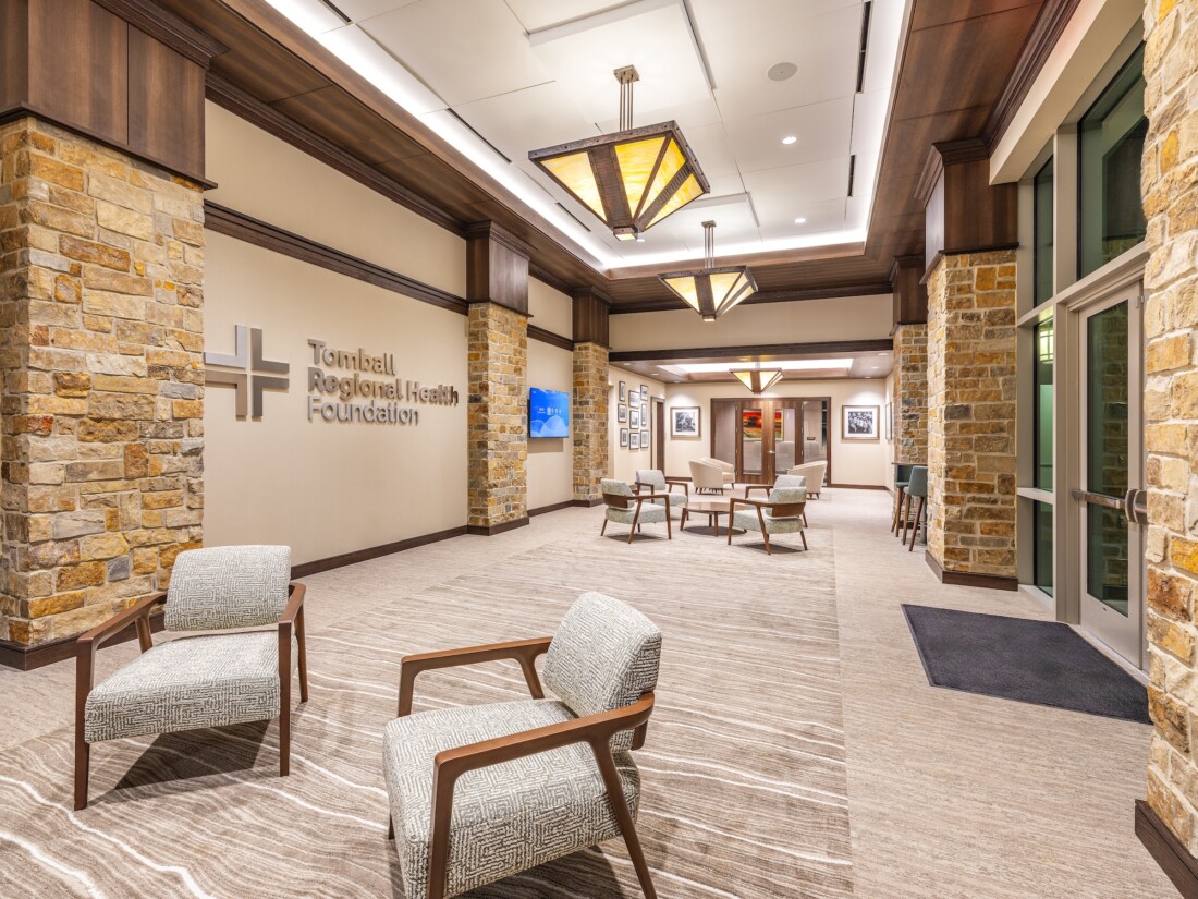 The administrative office complex and learning center is nestled on 5.5 wooded acres in the heart of the Tomball Medical Center. This building supports TRHF’s mission of improving healthcare in the greater Tomball region. The surrounding park area is open to the community and includes a shaded walking trail with fitness stations, a sensory garden designed for individuals with special needs, a tranquil stocked pond, a covered pavilion, and other outdoor features that promote health and wellness throughout the community.